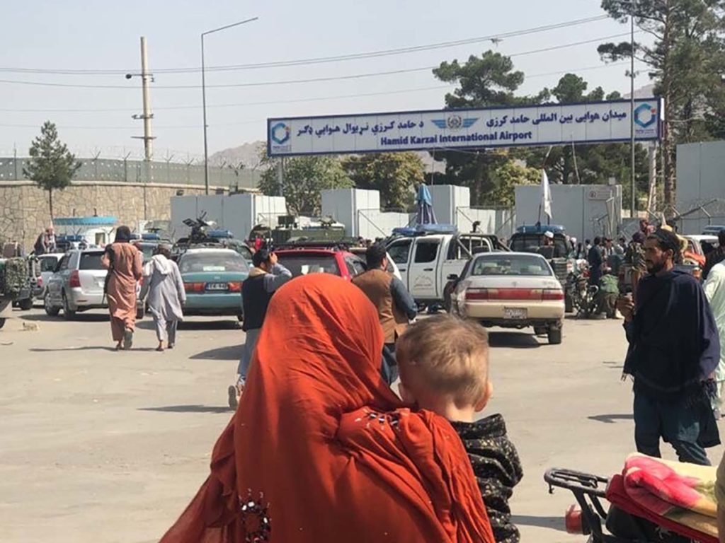 The front of the international airport in Kabul, crowded with people trying to board a flight to leave the country, on 17 August 2021.