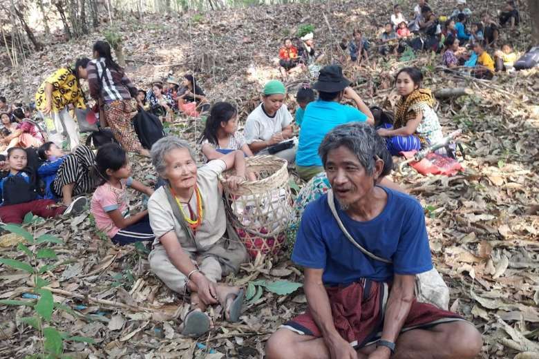 Villagers from the Karen minority ethnic group take refuge in the jungle following Myanmar military airstrikes in March.